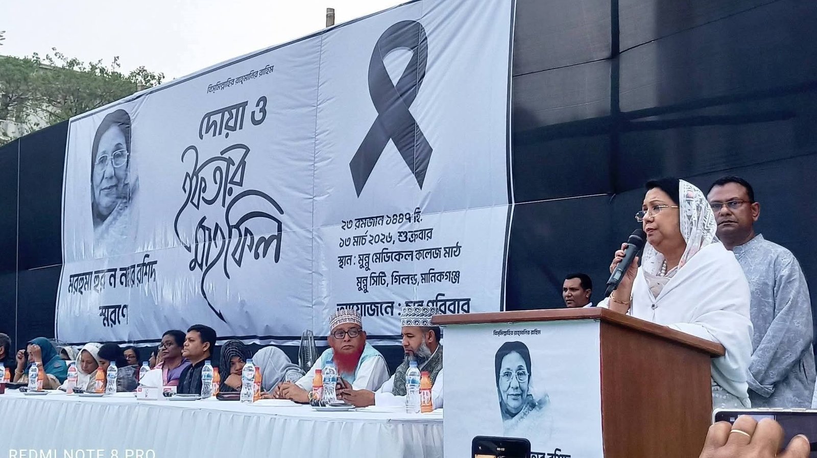 পরে তিনি তার প্রয়াত মা হুরুন নাহার রশিদের রুহের মাগফিরাত কামনা করে উপস্থিত সবার কাছে দোয়া চান।