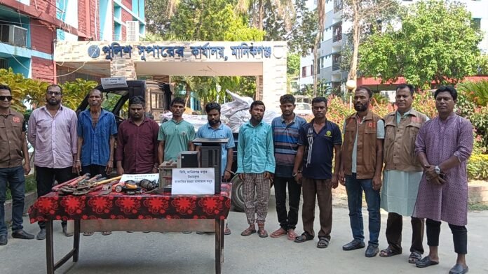 মানিকগঞ্জে দুটি শিল্পপ্রতিষ্ঠানে সংঘটিত ডাকাতির ঘটনায় লুন্ঠিত মালামাল উদ্ধারসহ আন্তঃজেলা ডাকাত দলের আট সদস্যকে গ্রেপ্তার করেছে জেলা গোয়েন্দা পুলিশ (ডিবি)। গ্রেপ্তারকৃতদের আদালতে পাঠানো হয়েছে।
