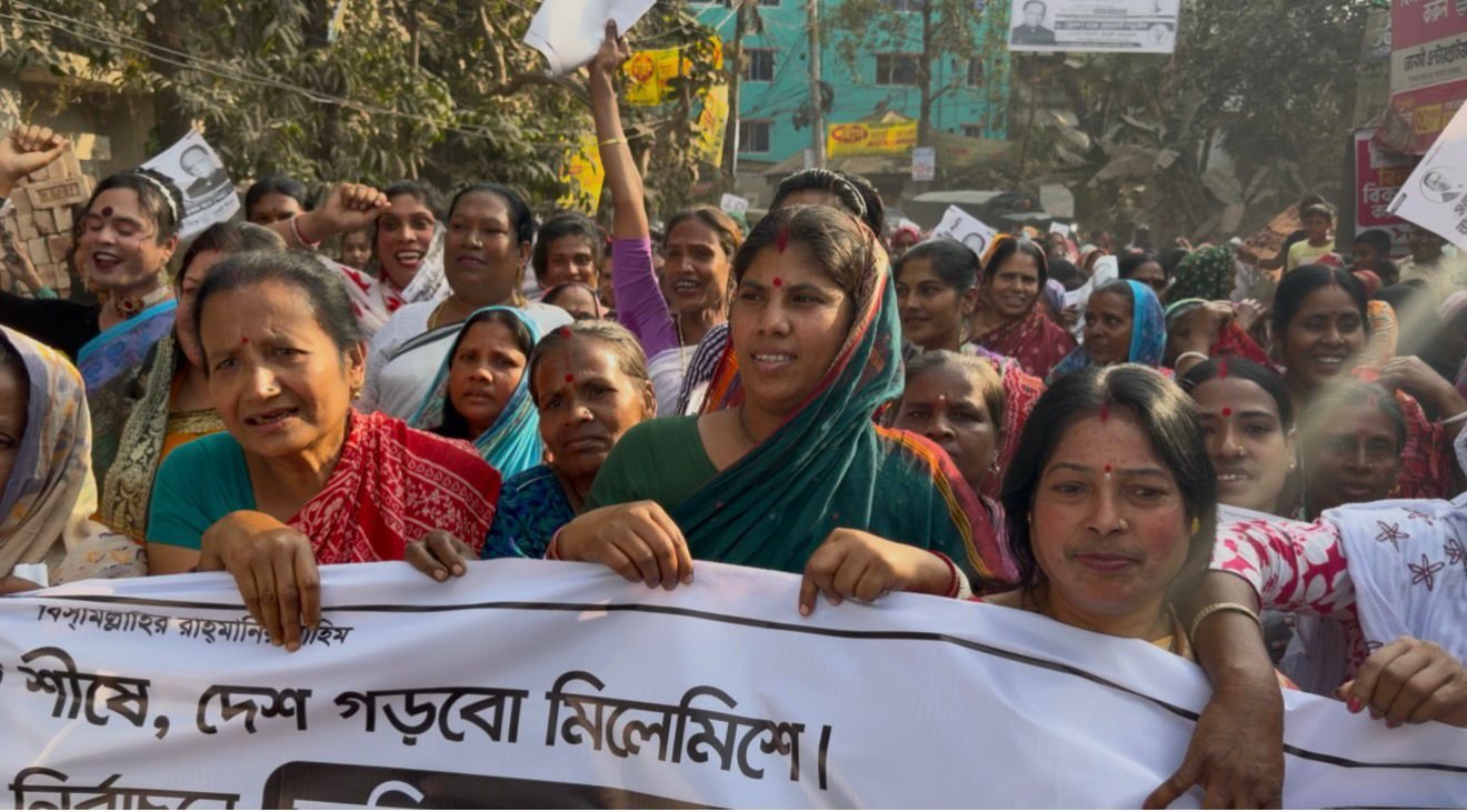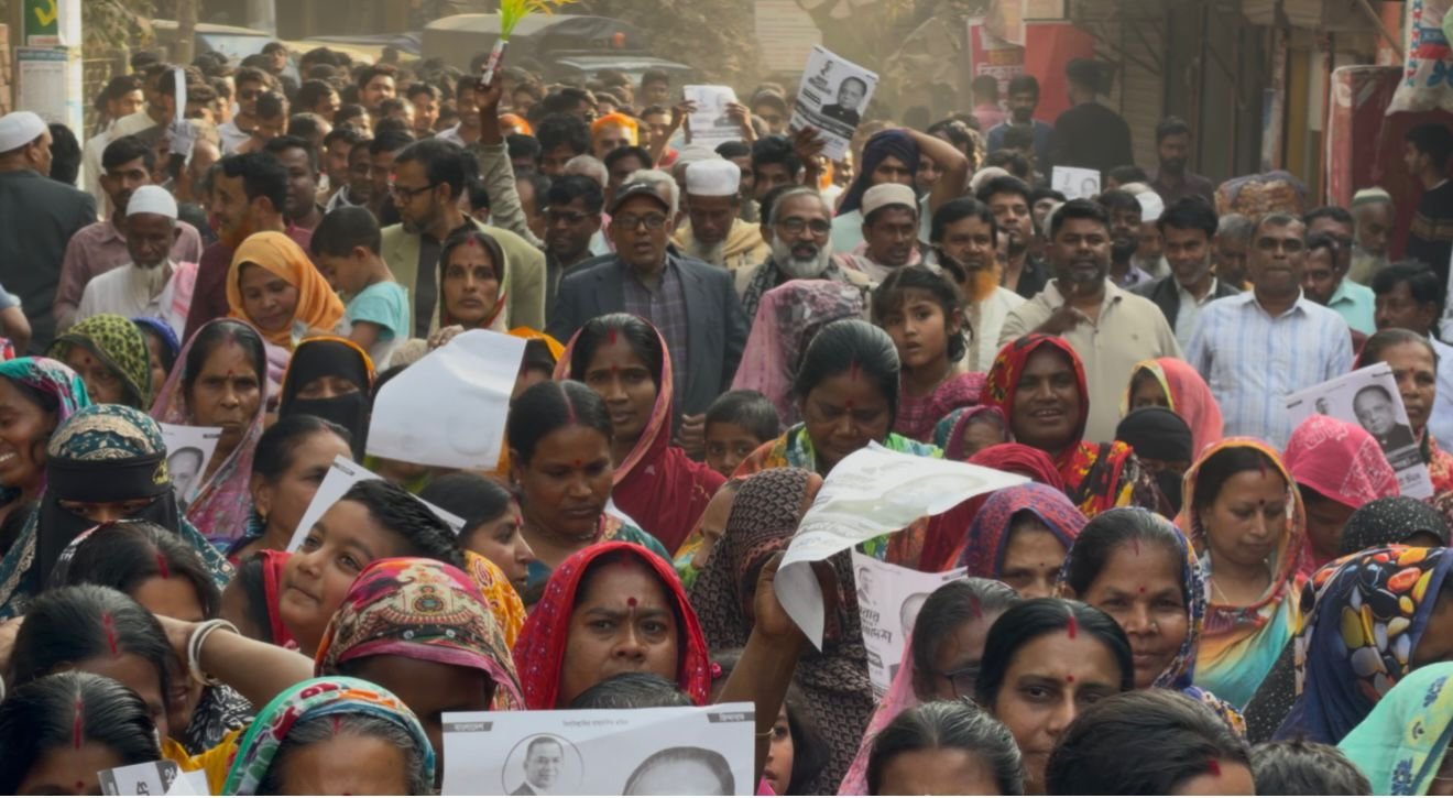 মানিকগঞ্জের সিংগাইর পৌরসভার আঙ্গারিয়া এলাকায় ধানের শীষ প্রতীকের পক্ষে গণমিছিল করেছে সনাতন ধর্মাবলম্বী পাঁচ শতাধিক নারী-পুরুষ। আসন্ন জাতীয় সংসদ নির্বাচনকে সামনে রেখে মানিকগঞ্জ-২ আসনের বিএনপি মনোনীত প্রার্থী মঈনুল ইসলাম খানের সমর্থনে এই মিছিল অনুষ্ঠিত হয়।