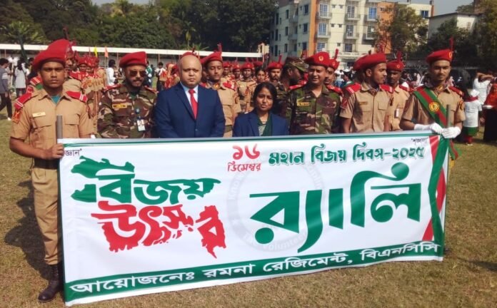 বিএনসিসির মহাপরিচালক জেনারেল আবু সঈদ আল মসউদের দিকনির্দেশনায় দেশের ৬৪টি জেলা ও বিভিন্ন উপজেলায় বিএনসিসির ক্যাডেটদের অংশগ্রহণে বিজয় র্যালির আয়োজন করা হয়। এর অংশ হিসেবে রমনা রেজিমেন্টের আওতাধীন ১২টি জেলায় অনুষ্ঠিত র্যালিতে দুই সহস্রাধিক ক্যাডেট অংশ নেয়।