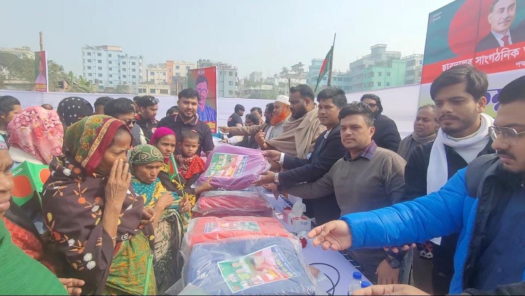 সারা দেশের মতো ঢাকার সাভারেও জেঁকে বসেছে শীত। সন্ধ্যা নামলেই হিমেল হাওয়ায় অসহনীয় হয়ে উঠে জনজীবন। এই শীতে সবচেয়ে বেশি ভোগান্তিতে পড়ছেন খেটে খাওয়া অসহায় মানুষরা। শীতার্ত মানুষের কষ্ট লাঘবে পাশে দাঁড়িয়েছে ছাত্রদল।